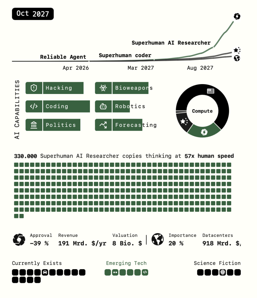 Nachdem wir letztes Jahr im Rahmen einer Deep Reading Group das „Techno Optimist Manifesto“ von Marc Andreesen kritisch unter die Lupe nahmen, beschäftigen wir uns in diesem Jahr mit dem spekulativen forschungsbasierten Szenario „AI 2027“.