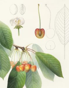 Jasmin Huber entwickelte im Rahmen ihrer Masterarbeit 2013 eine spezielle Aquarelltechnik, in der mit modernen Mitteln die faszinierende Ästhetik von klassischen botanischen Aquarellen erreicht wird. Nach intensiver Weiterführung ihrer Arbeit entstanden 15 Illustrationen, die jetzt in einem umfassenden Standardwerk publiziert wurden: CHRIESI, Kirschenkultur rund um Zugersee und Rigi.
