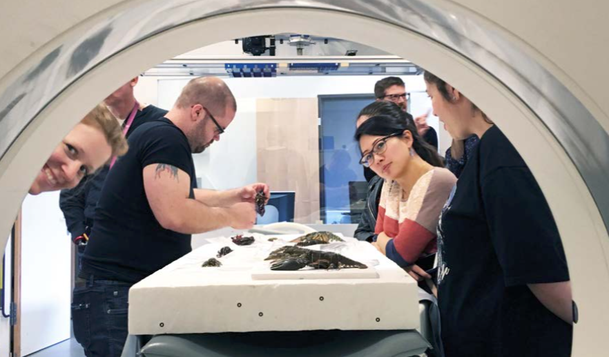 Hands-on in Technik und Forschung: In Kooperation mit dem Virtopsy Lab des Instituts für Rechtsmedizin der Universität Zürich können Studierende an eigenen Untersuchungsgegenständen mit dem CT-Scanner 3D-Datensätze generieren.
