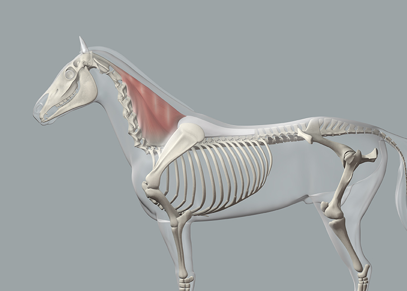 Eine animierte 3D-Visualisierung veranschaulicht die Problematik und gibt einen Einblick in das Innere des Pferderückens. Die Animation schliesst verschiedene gestalterische Methoden mit ein und vermittelt den komplexen medizinischen Inhalt anschaulich und adäquat strukturiert.