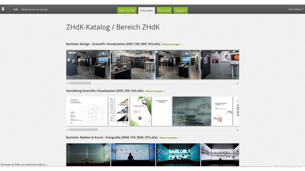 Das Medienarchiv der Künste ist die Online-Plattform der ZHdK für künstlerische Werke und deren mediale Dokumentationen. Das Medienarchiv steht den Angehörigen der Hochschule zum Teilen von Medien zur Verfügung. Als institutionelles Repositorium wird es u.a. für die Ablieferung von Abschlussarbeiten, für das Forschungsdatenmanagement und die Archivierung von Projekten verwendet. Die ZHdK-Internetseite und weitere Anwendungen beziehen Inhalte aus dem Medienarchiv.