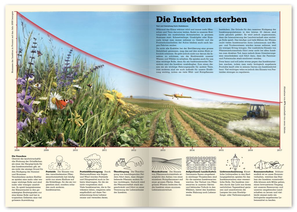 Der Aufbau von Kontakten zu potenziellen Kunden sieht er als eine Hürde der Selbstständigkeit. Von sich selbst sagt er, er sei nicht der beste Netzwerker, man müsse auch etwas der Typ dafür sein. Ich frage ihn, wie er vorgeht, um zu Aufträgen zu kommen. Er schreibe proaktiv immer wieder Leute an und stelle sich und seine Arbeit vor. «Das Schlimmste, was passieren kann ist, dass man keine Antwort erhält». Auch das Unterhalten einer Website empfiehlt er angehenden Illustratoren, um sich und seine Arbeiten präsentieren zu können.