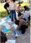 I bite back my defensiveness. By the third session, she understands what is happening- we are feeling and expressing and exploring and encountering the other – we are taking risks and trying out new ideas and new ways to do things – we are workingto make something beautiful- all the while playing- we are doing art. The teacher brings us tea and apples from her tree.