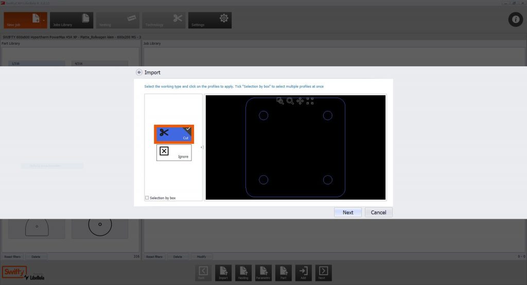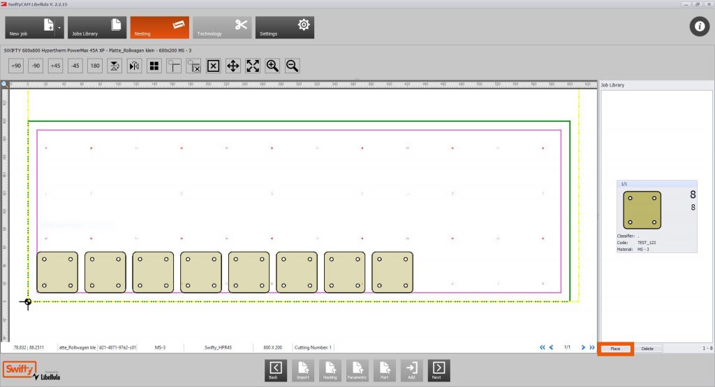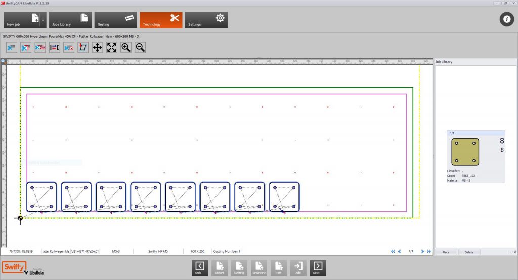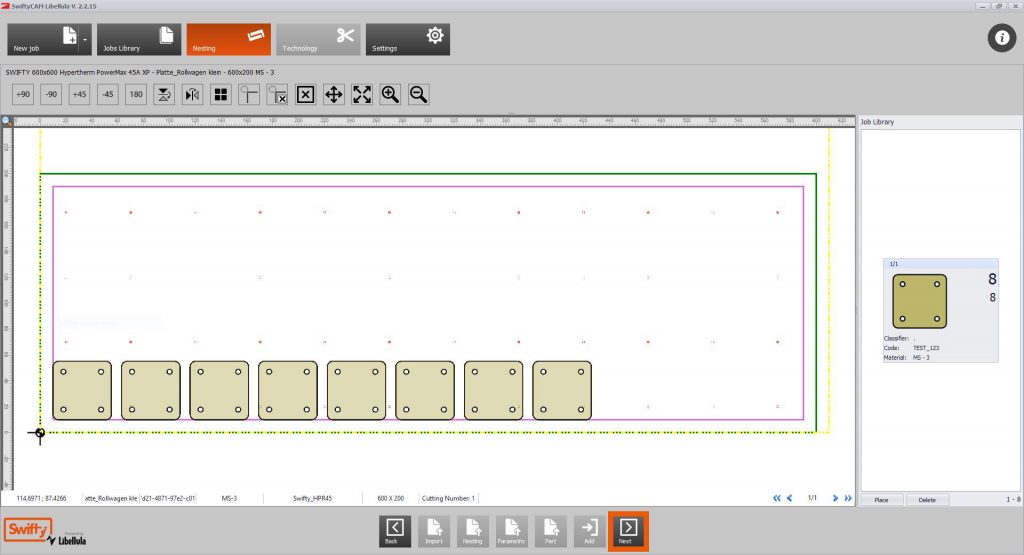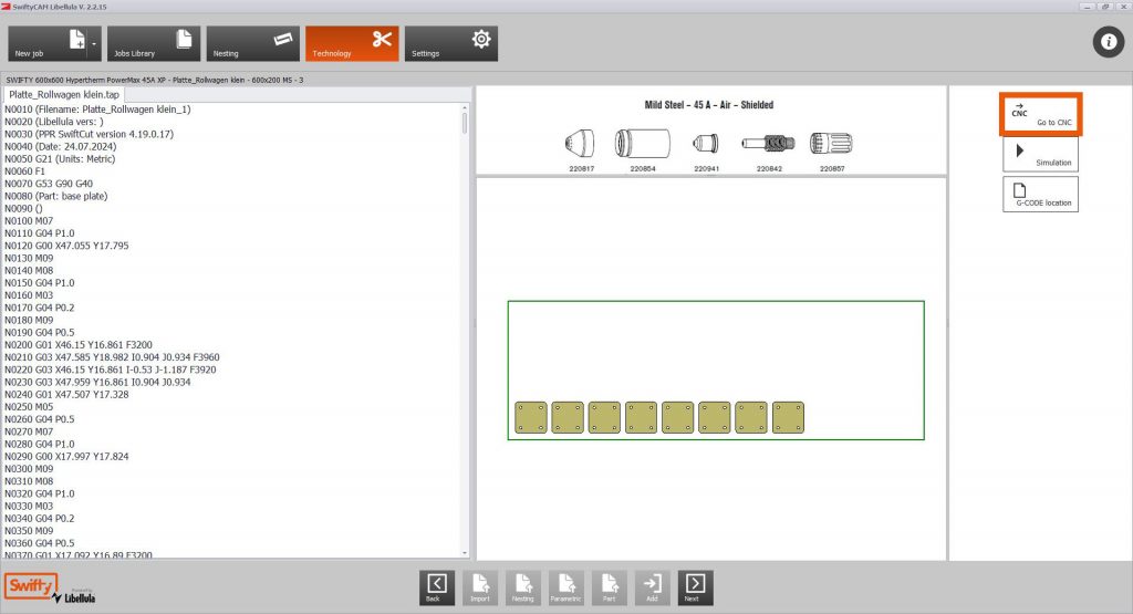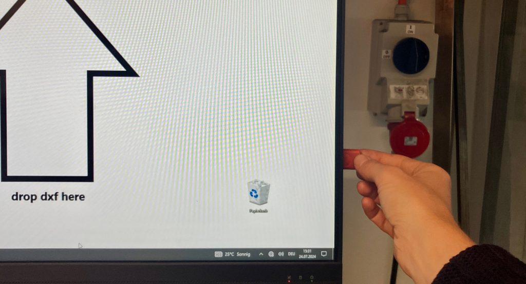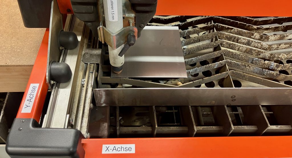 Mit der Maschinensteuerung kannst du den Nullpunkt Deiner Datei auf dem Werkstück setzen, die Datei zur Kontrolle im Trockenlauf abfahren und dann den Auftrag starten.