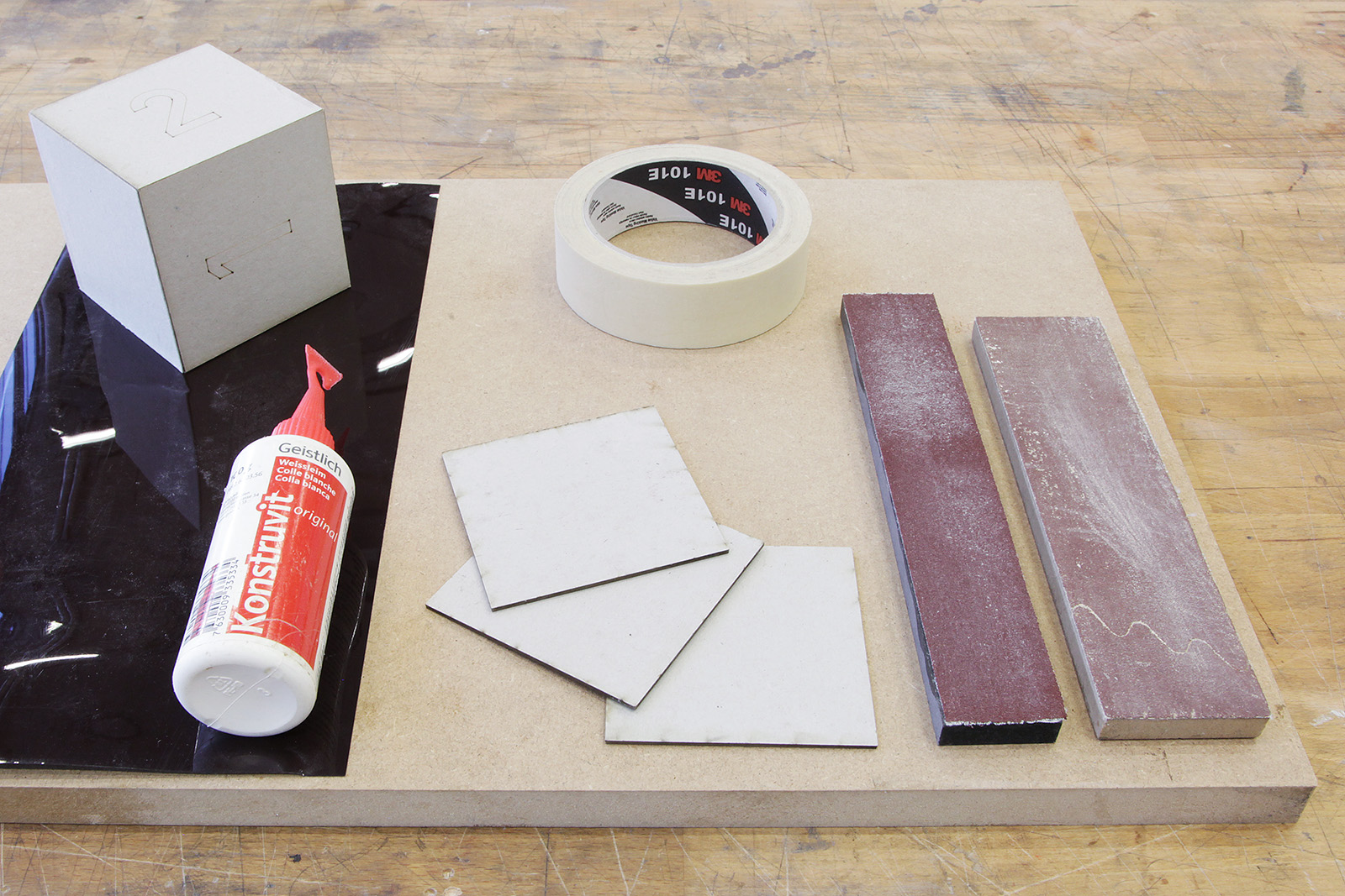 - Schleiflatte (grobes Schleifpapier ca. 80er Körnung auf Holzlatte aufgezogen)