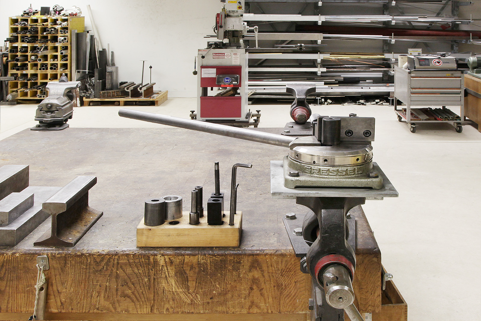 Der handbetriebene Profilbiegeapparat von GRESSEL ist ein robustes Werkstattgerät zum Kaltbiegen von Vollprofilen wie Flachstahl und Rundmaterial. Es ermöglicht ein präzises Biegen bis 180° und ist durch seine einfache Handhebel-Bedienung sehr gut für unsere Werkstatt geeignet.
