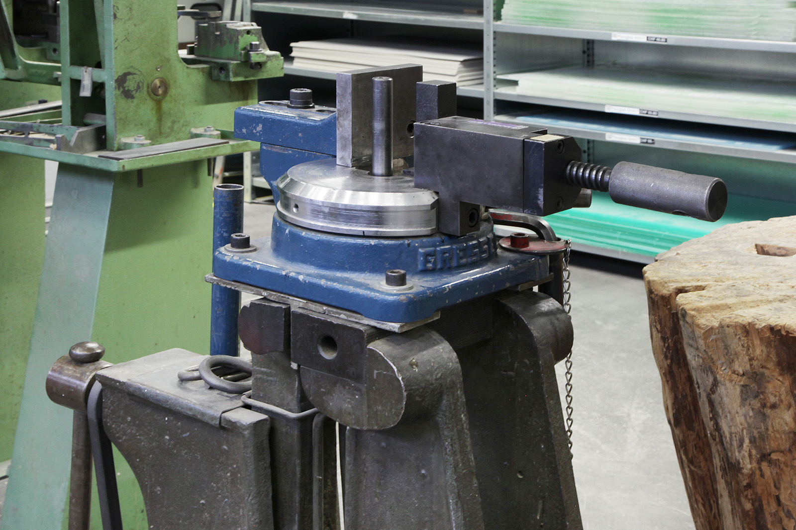 Der Profilbiegeapparat dient zum Abwinkeln und Rundbiegen von Metall-Vollprofilen. Die wechselbaren Werkzeugeinlagen definieren den Biegeradius.