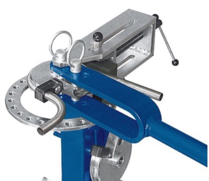 Rohrbiegeaparat zum kalten Biegen von dünnwandigen Rohren aus Metall. Mögliche Rohrdurchmesser und Biegeradien werden durch die Biegewerkzeuge definiert.