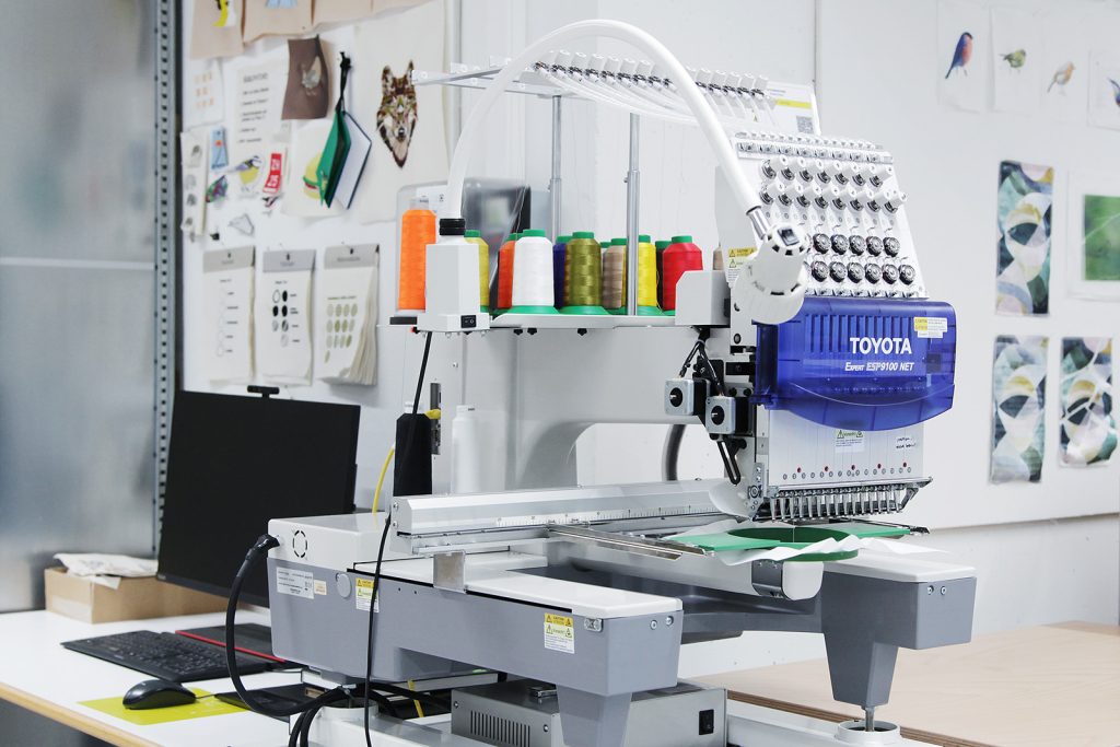 Die Toyota Expert Stickmaschine ist eine computergesteuerte Stickmaschine zur Umsetzung individueller Stickmotive im textilen Gestaltungsprozess. Stickentwürfe werden entweder mit der Stickereisoftware Wilcom Embroidery Studio erstellt oder als vektorbasiertes PDF importiert, die Vorlagen werden danach mit der Software in Stickdaten umgewandelt. Das Verfahren eignet sich für präzise Stickarbeiten auf leichten bis mittelschweren Textilien. Die Motive können mit 15 unterschiedlichen Garnfarben programmiert und in kleinen bis mittelgrossen Stickflächen ausgestickt werden.
