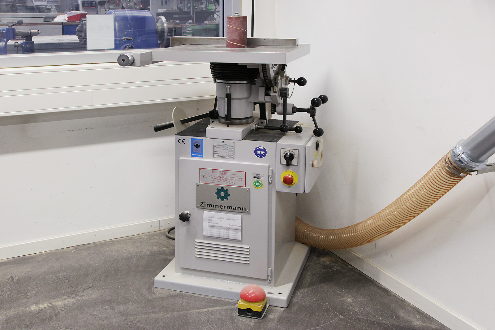 Die Zylinderschleifmaschine kann verwendet werden, um konkave Seiten zu schleifen. Sie arbeitet mit einem sich drehenden Schleif-Zylinder. Sie ist für das Schleifen von Holz, Holzwerkstoffen und Modellbauwerkstoffen ausgelegt. Keine Metallwerkstoffe schleifen!